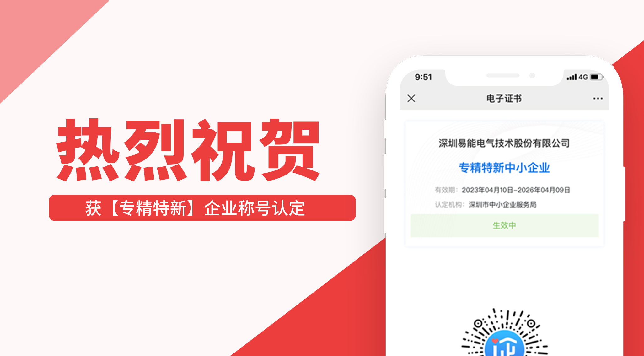據深圳市“專精特新”中小企業(yè)名單公示,易能電氣憑借專業(yè)技術水平,創(chuàng)新能力等綜合實力成功獲評深圳市“專精特新”中小企業(yè)稱號。
